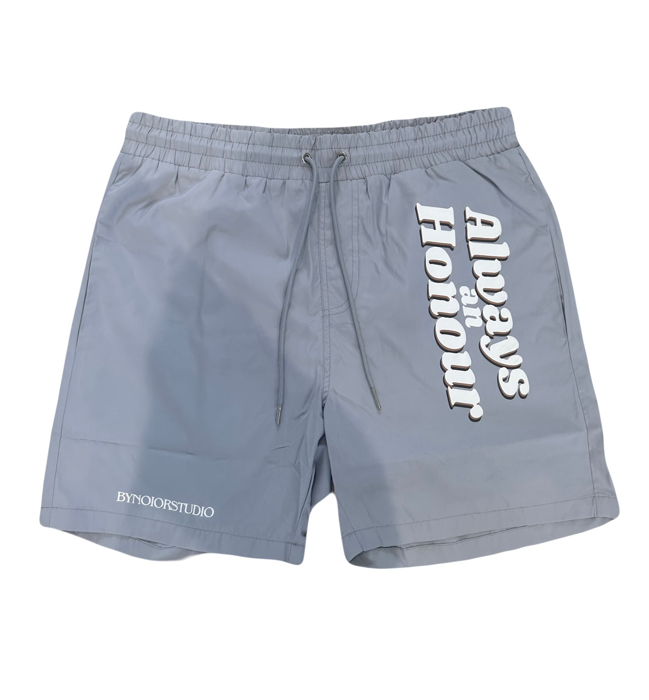 Meticulously made from premium 100% polyester, ALWAYS AN HONOUR SWIM SHORTS showcase a striking logo on the left side and a discreet one on the back. With a regular fit for maximum comfort and a soft mesh lining for added coziness, these swim shorts are a necessary addition to your summer wardrobe. The included care instructions make washing a breeze, ensuring both practicality and fashion in one.